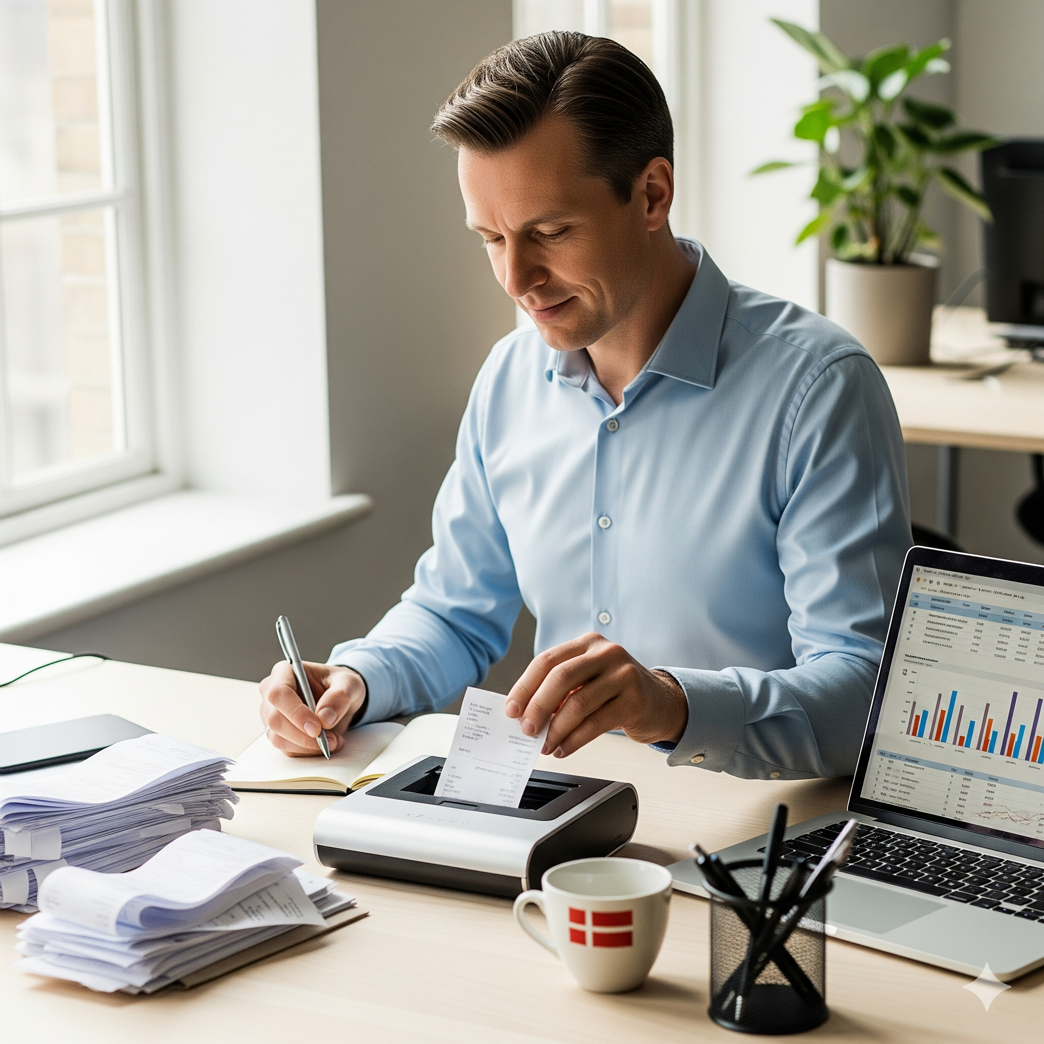 Lav en fast vane med at registrere udgifter og bilag løbende. Det sparer tid, mindsker risikoen for fejl og giver tryghed, hvis du bliver udtaget til kontrol.